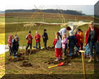 | Am 19.07.08 hat die Kindergruppe zusammen mit H. Norbert Sötz einen Lehmofen gebaut | ||