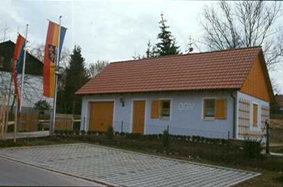 OGV-Haus Baustelle- so hat es angefangen im Dez. 1997 Josef Spörl - damals 2. Vorsitzender - beim Werkeln Der Bau geht zügig voran ...... Der Giebel wird aufgesetzt ...... und schon ist es fertig